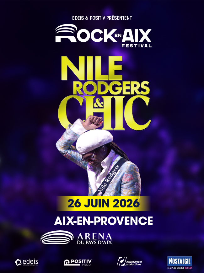 La première édition du festival ROCK EN AIX vibrera au rythme du funk légendaire de Nile Rodgers à l’Arena du Pays d’Aix.