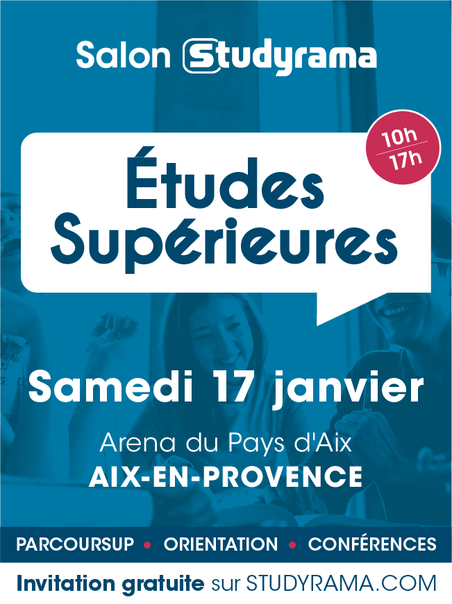 Studyrama organise sa 20ᵉ édition du Salon des Études Supérieures le samedi 17 janvier 2026 de 10h à 17h à l’Aréna du Pays d’Aix à Aix-en-Provence. Lycéen, élève en classes préparatoires ou étudiant, ce salon des Études Supérieures vous permettra de rencontrer des écoles supérieures de la région PACA et de la France entière.